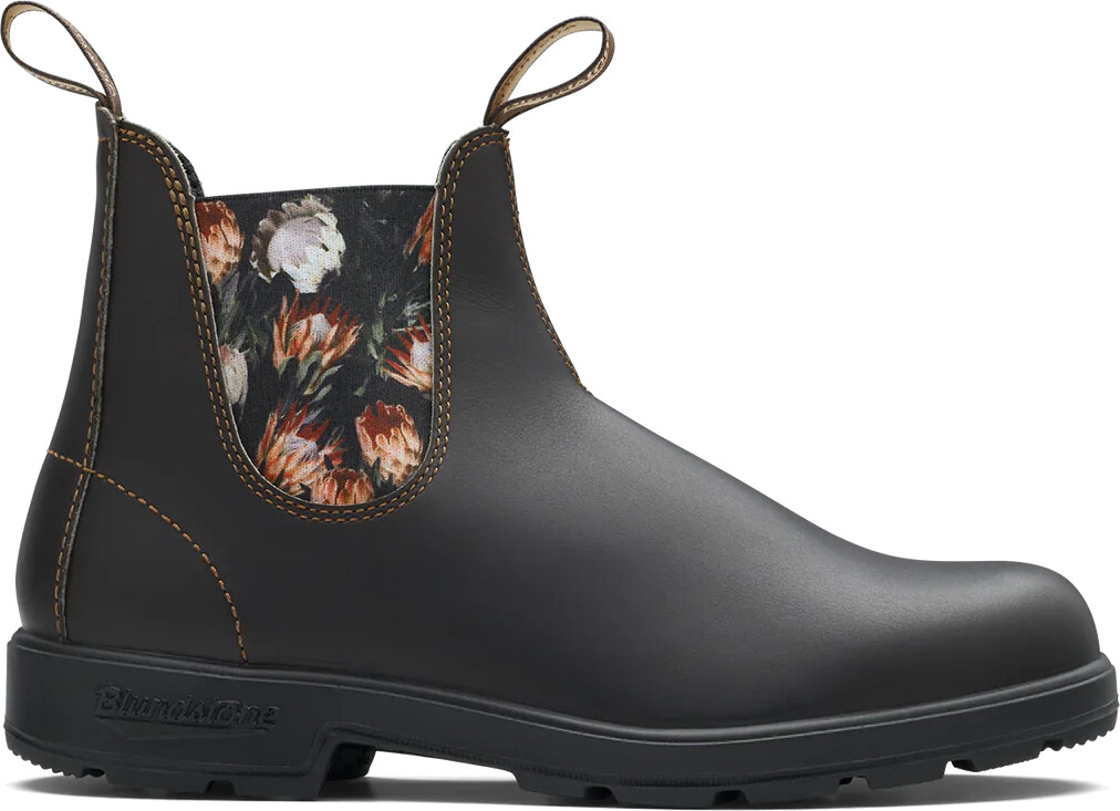 Blundstone Original leather boots #2205 in Brown with Protea Elastic celebrates Australia’s rare and beautiful Protea flower, known for its ability to thrive in rocky, rough territory, just like Blundstone boots. Pull-on, kick-off, all-day, dry comfort. A weatherproof boot that doesn’t mind a little watering. These flowers last!