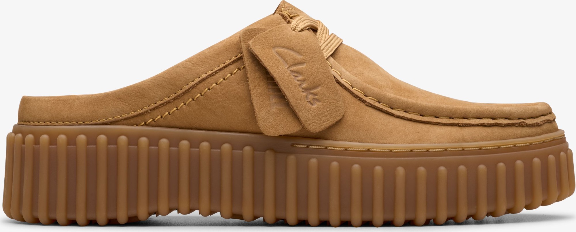 Crafted from premium nubuck in a classic colourway, Torhill Mule champions all the design codes of our icon in an easy slip-on profile. Its statement ribbed outsole serves up vintage Clarks cool – while heritage stitching and fobs enhance its crafted aesthetic.