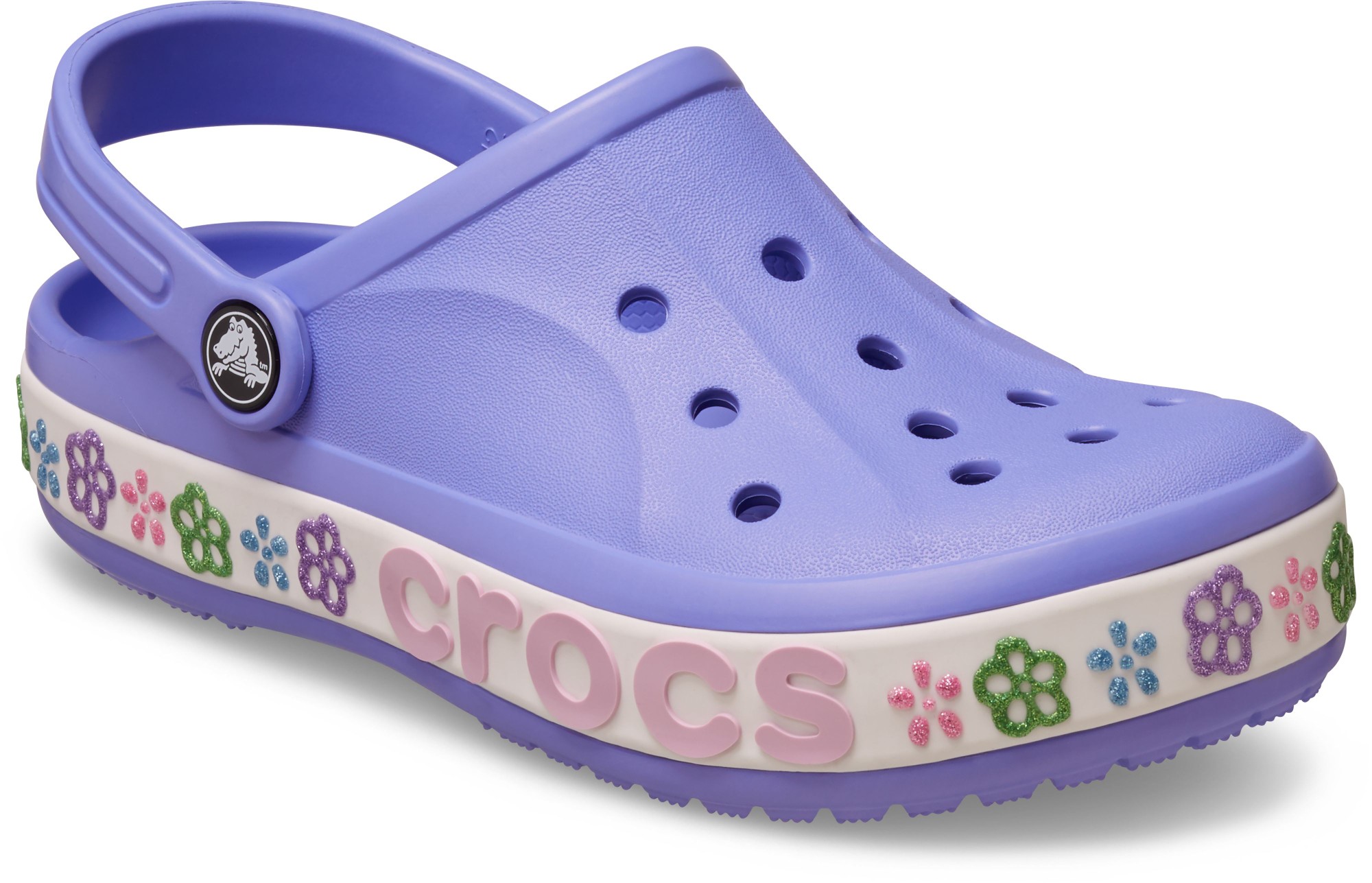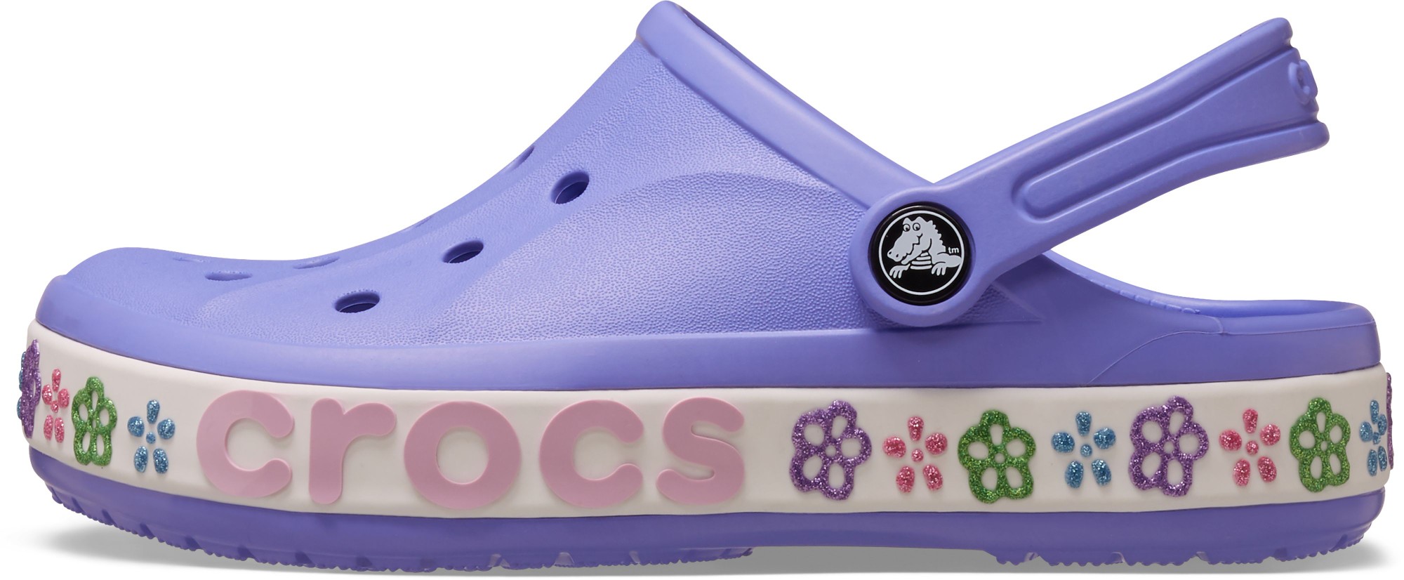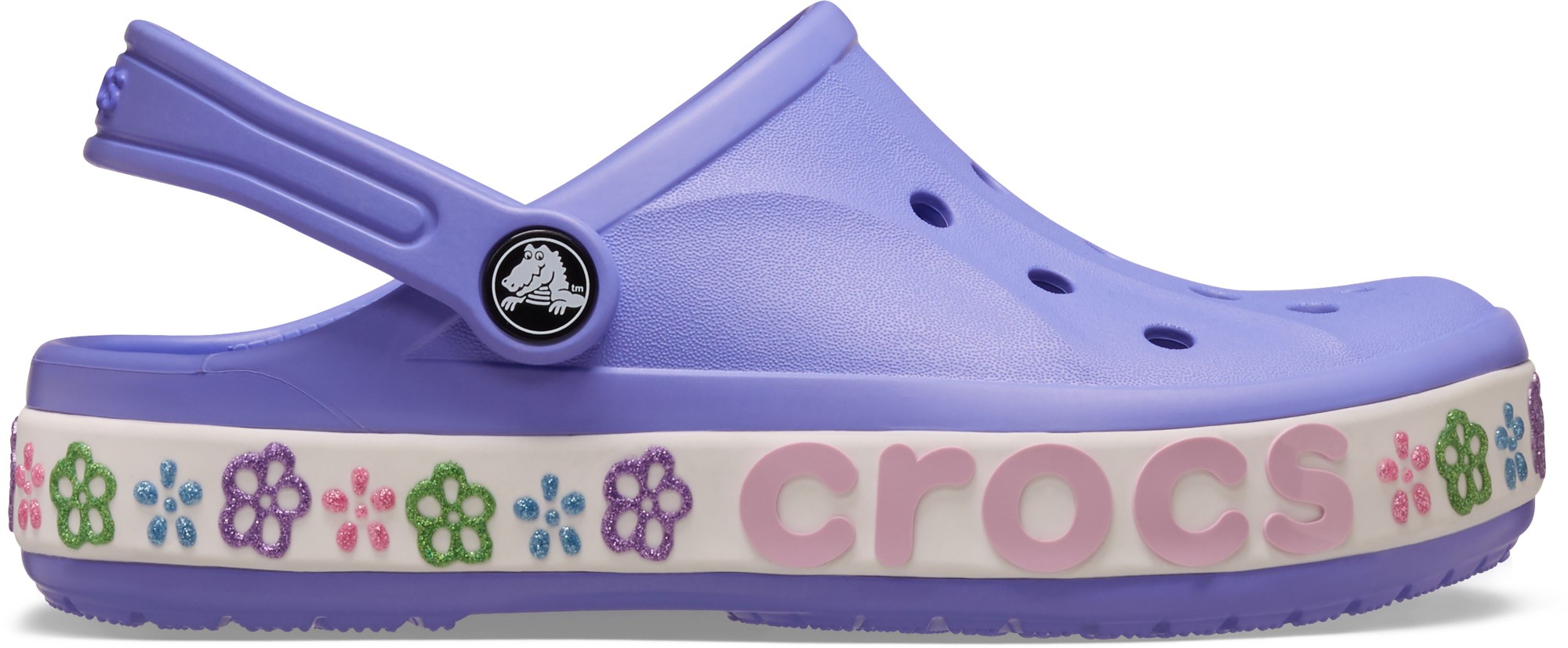 Step into this updated version of the Toddler Bayaband Clog and enjoy iconic Crocs comfort combined with sporty style. Now featuring a stylish band design with a 3D puffy paint flower graphic. This fun, go-anywhere style staple lets you slide in and show off some unique style.