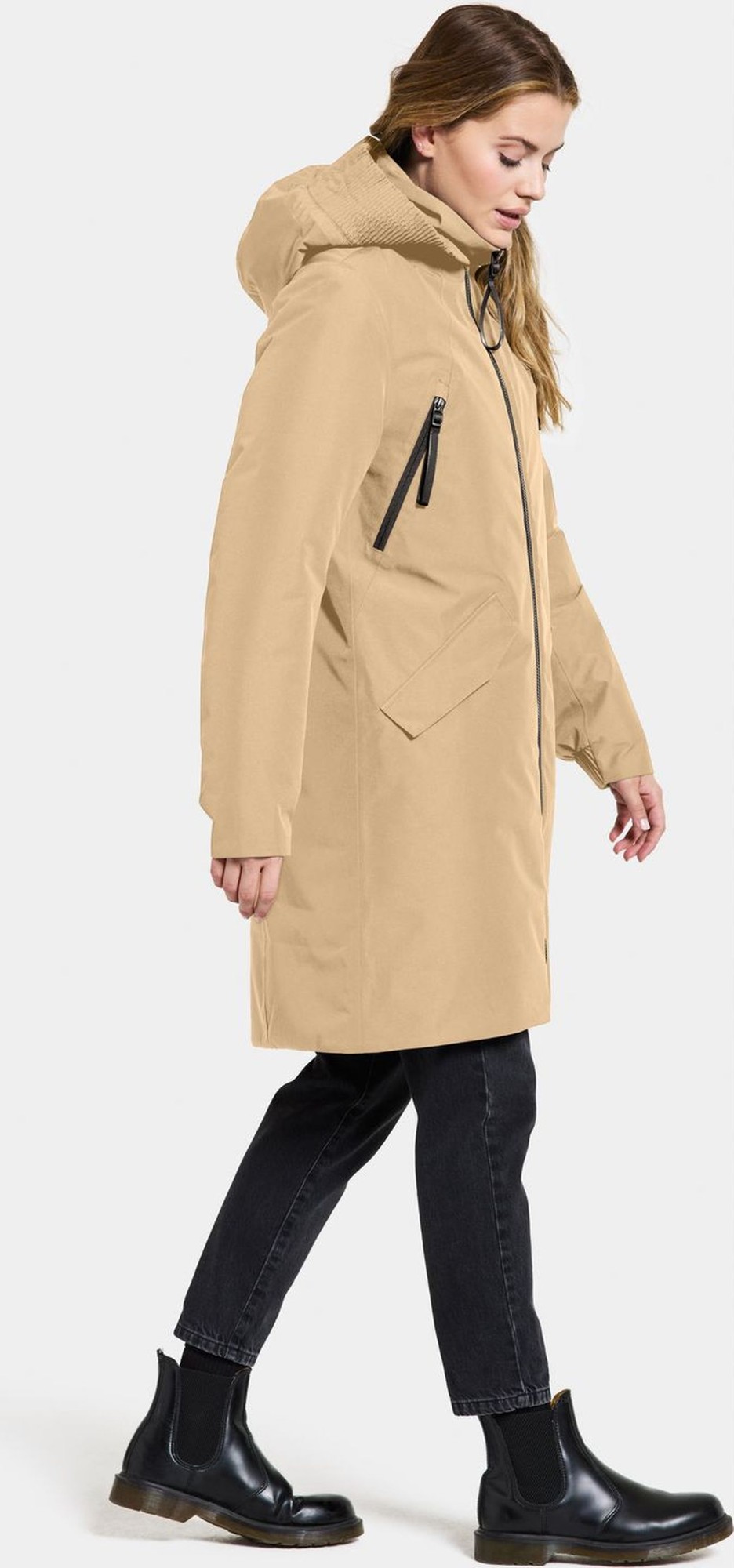 The cozy and padded Bente parka is an elegant garment that keeps you both dry and warm when going outside. This figured-shaped parka with taped seams prevent water from seeping in and the woven outside surface has a matte and soft touch, made in 100% Polyester. Bente parka has 4 pockets on the outside where you can store belongings and warm your hands. Additionally, it has nice elastic details at sleeves and around hood.