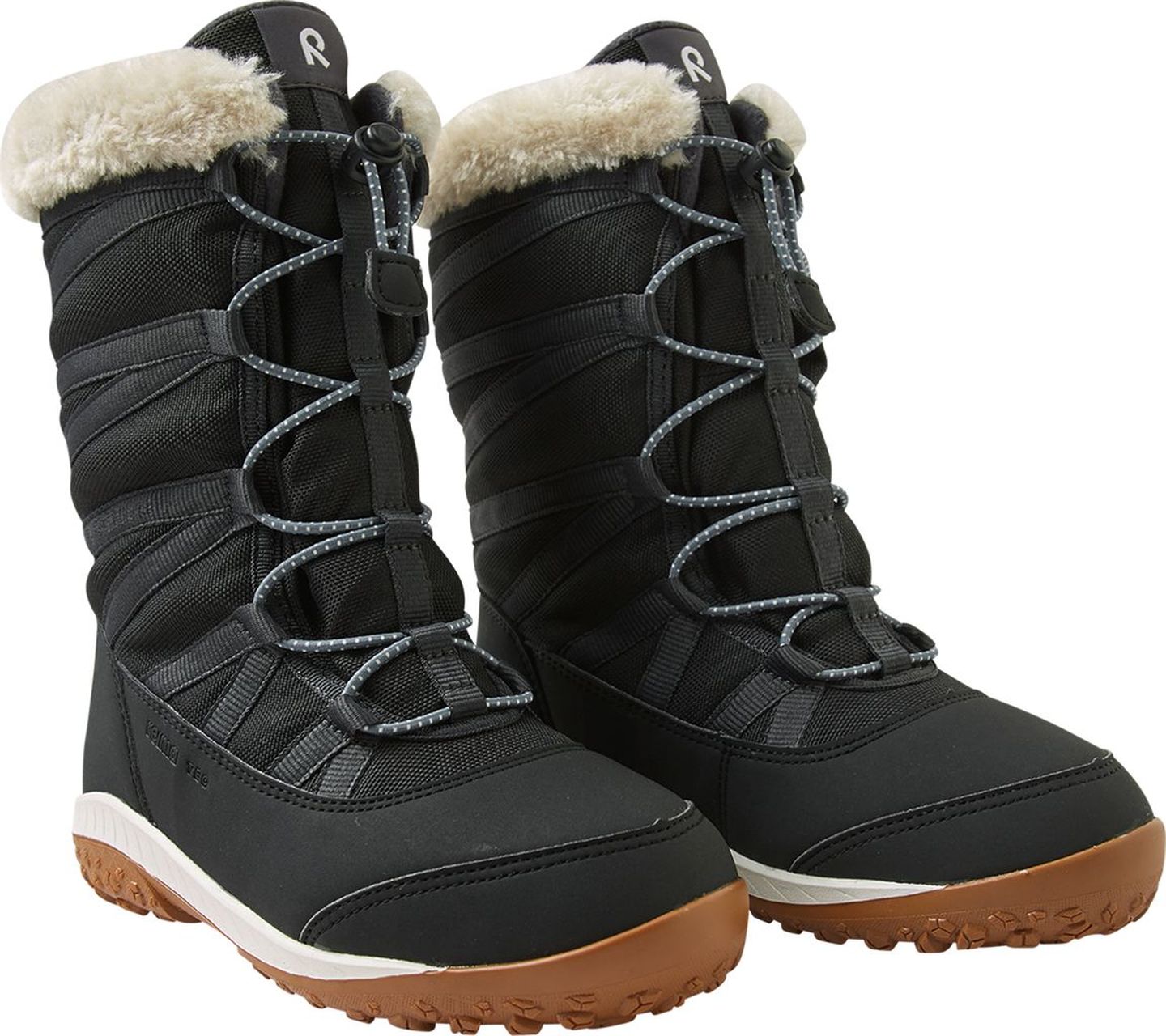 These warmly lined Reima winter boots were made to endure the iciest weather. Synthetic uppers, seam-sealed inserts, and rubber soles offer waterproof protection. Each pair features removable Reima insoles that ensure comfortable cushioning and a Happy Fit print for accurate sizing. The elastic laces make for fast, easy pull-on. These kids' winter boots boast reflective statement details.
