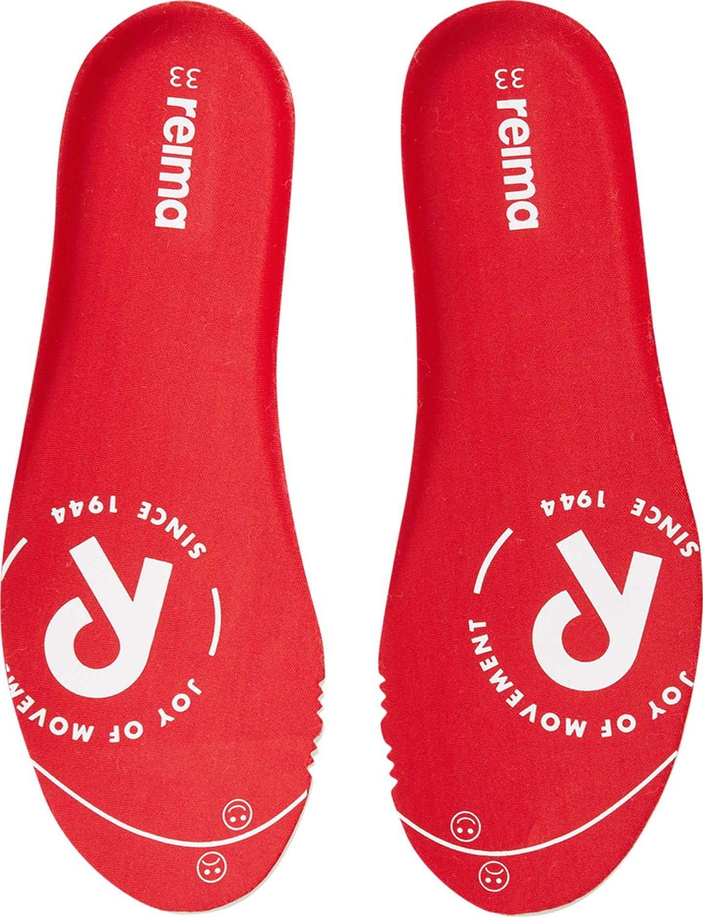 Removable, molded EVA insoles with jersey lining and Happy Fit print help to find the correct size;