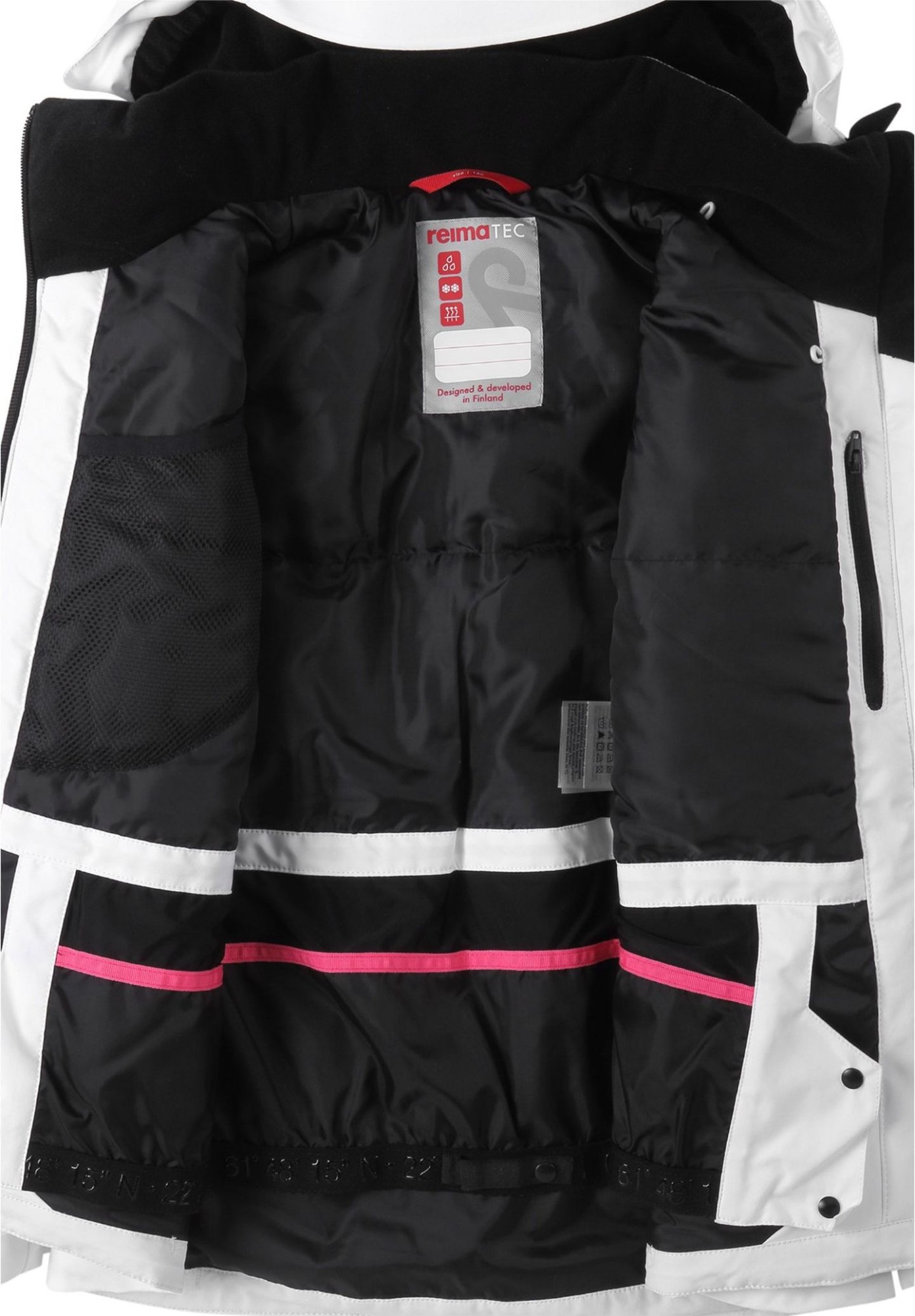 Reimatec water- and windproof kids' winter skiing jacket. Crafted from a stretchy material. Features lots of functional snowsports-specific details. Fitted cut.
