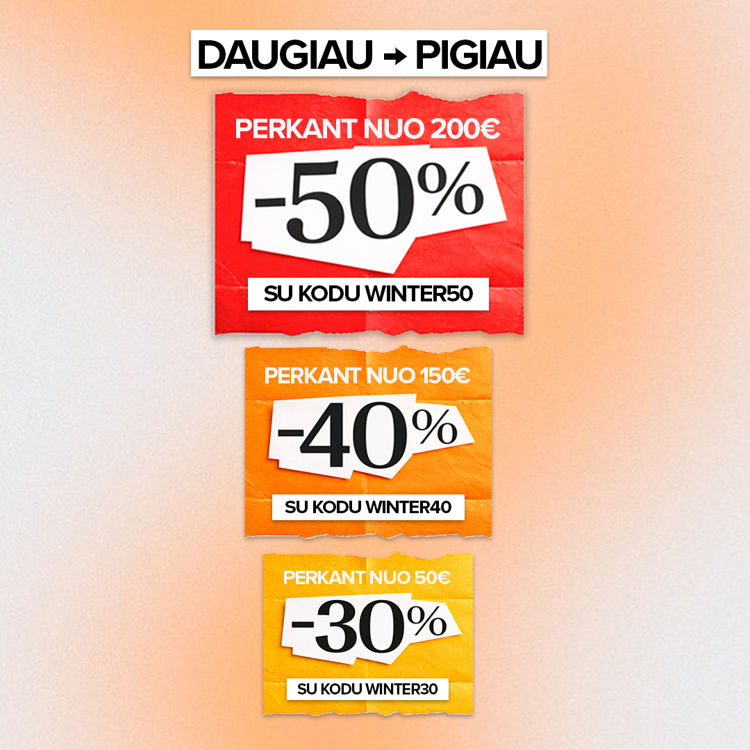 - Nuolaida prisitaikys tik su nuolaidos kodu: WINTER50 perkant nuo 200 €.