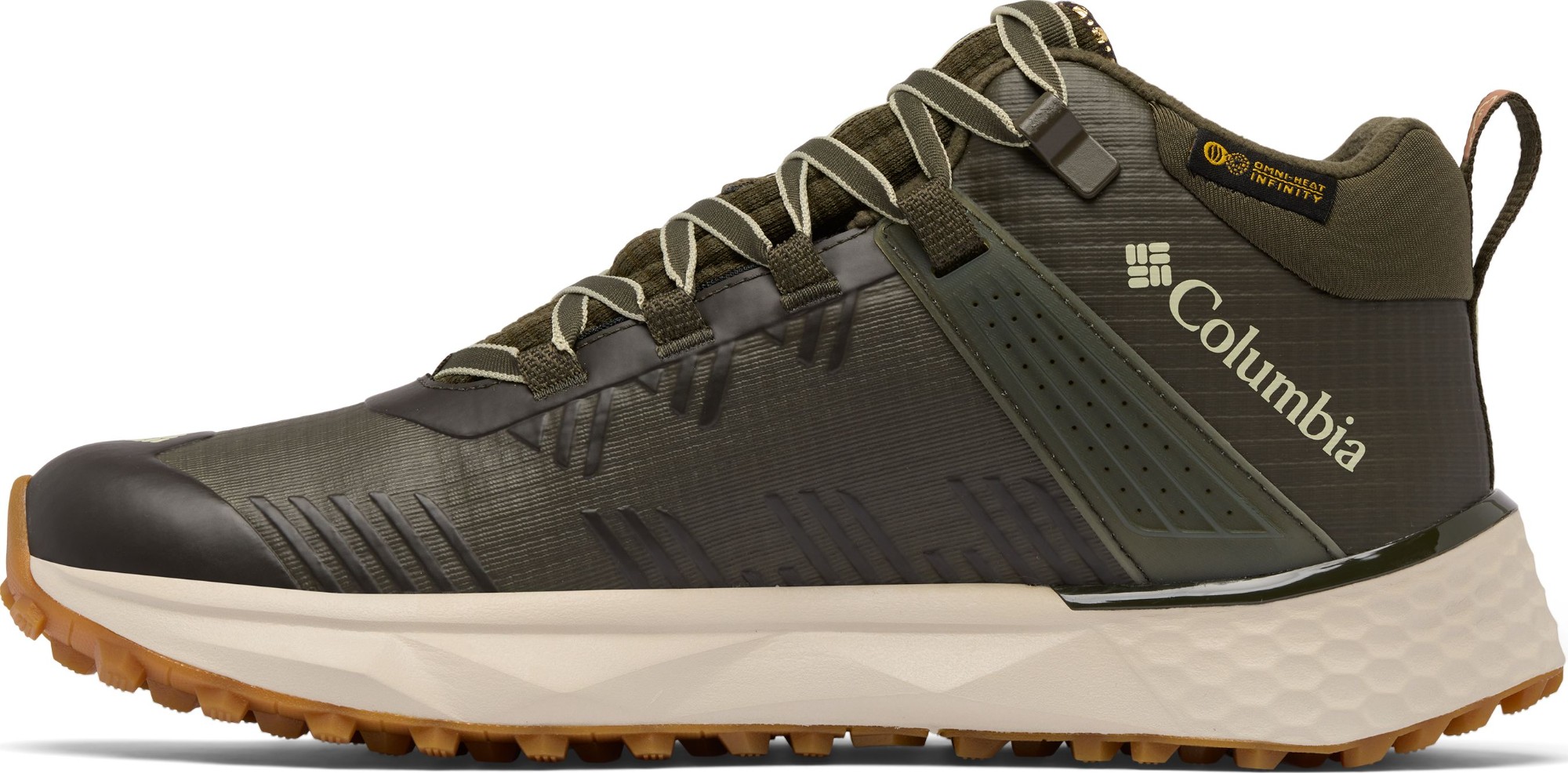 UPPER: Omni-Heat™ Infinity reflective lining. Durable mesh with no sew overlays and TPU Midfoot support for extra protection. Outdry™ waterproof, breathable construction. NAVIC FIT SYSTEM™ delivers a natural midfoot lock down. Micro fleece lining with 100g insulation.