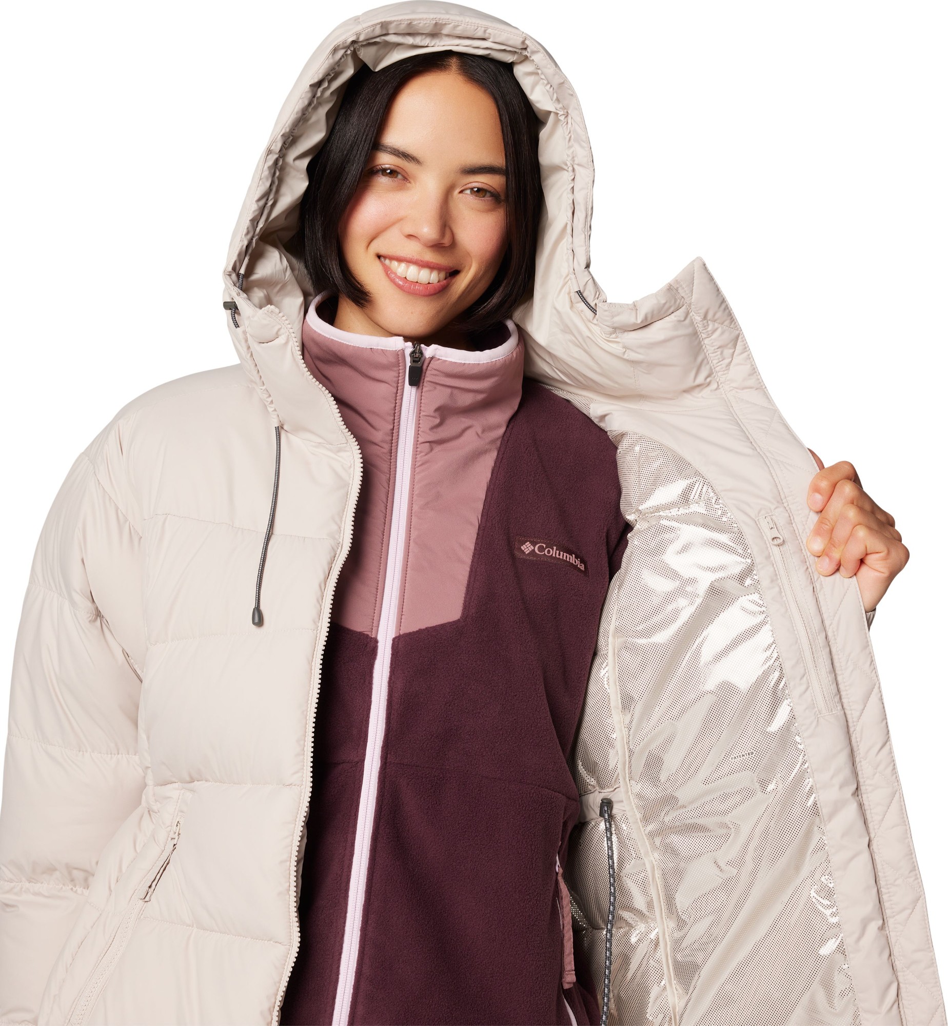 Composition: 100% polyester, 100% Recycled Polyester, Omni-Heat™ Reflective lining 100% polyester.