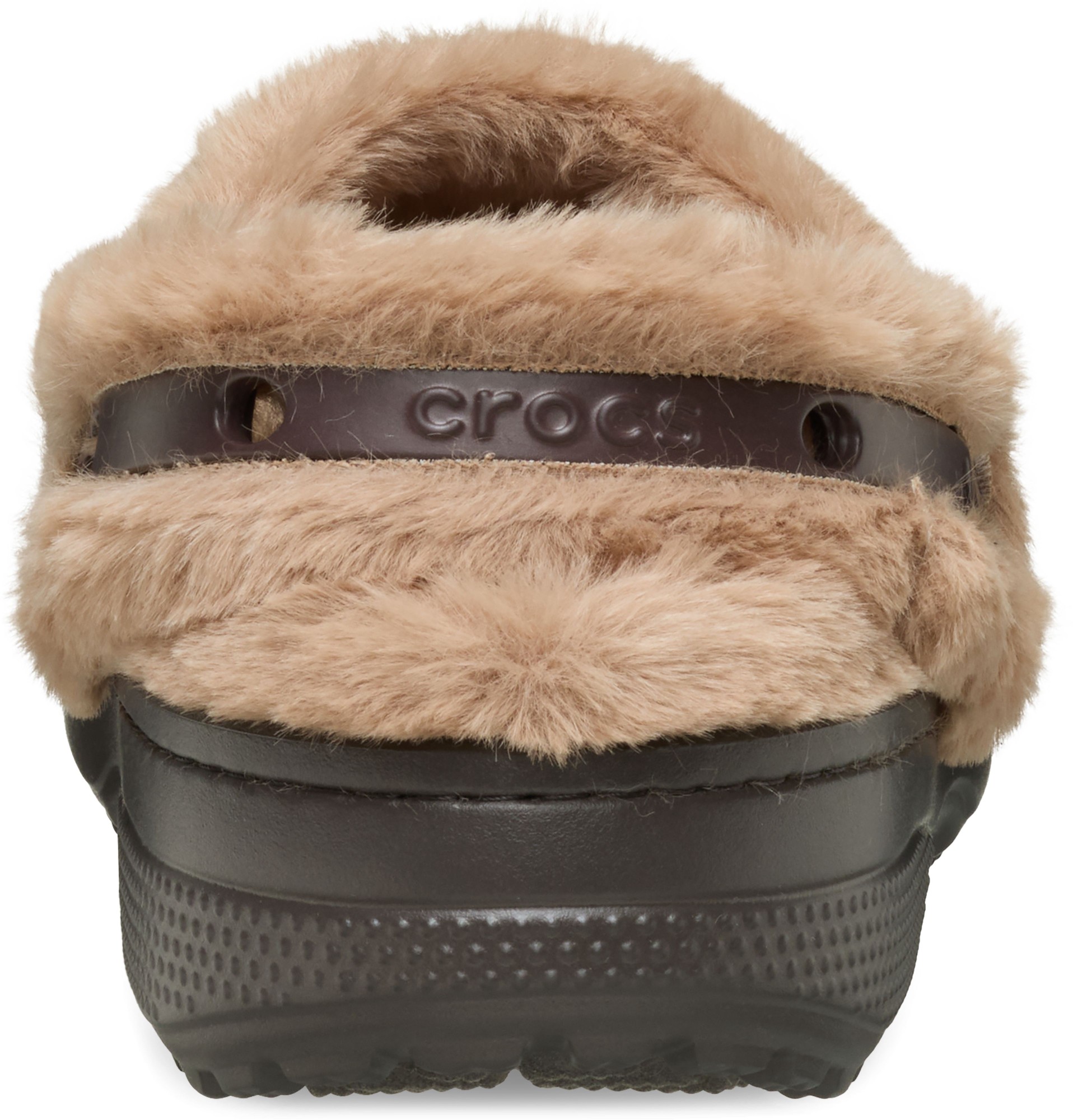 Pivoting faux fur backstrap with Jibbitz™ holes for personalization;