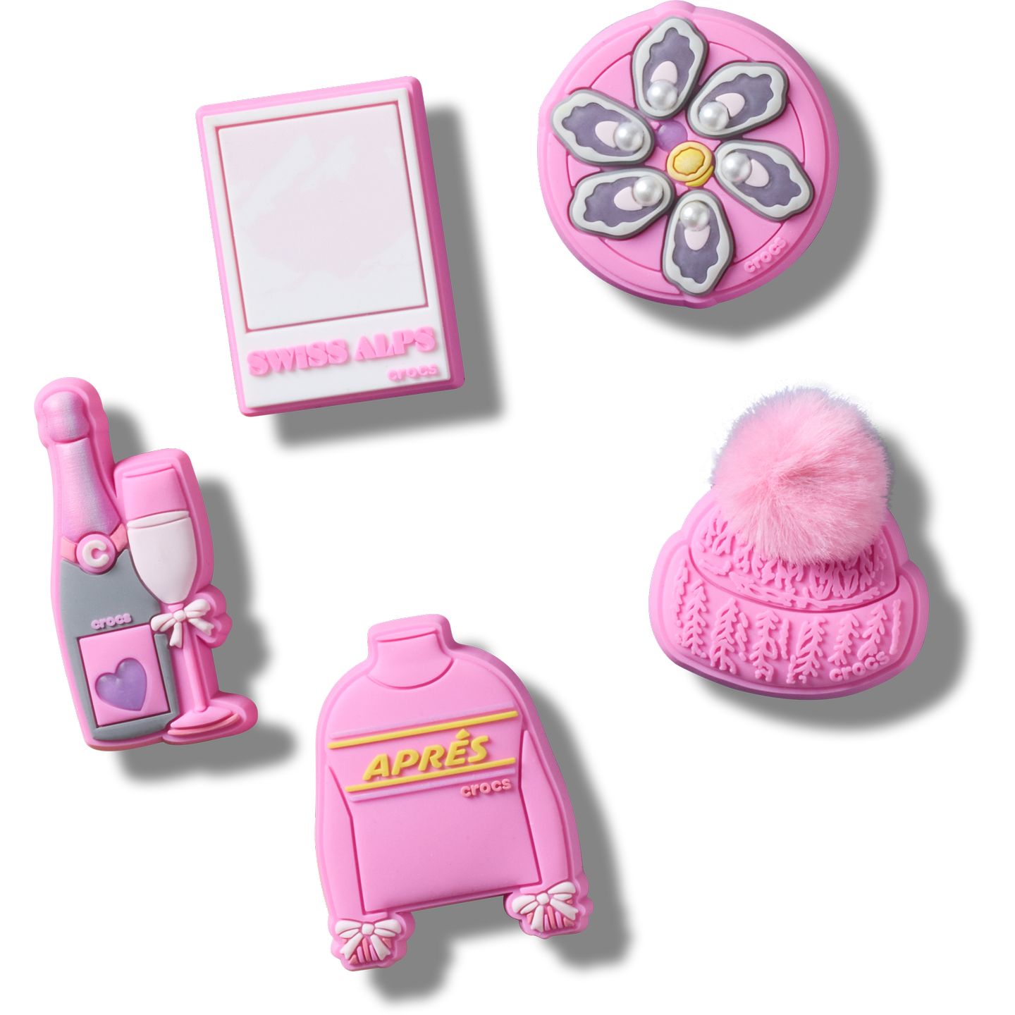 Pop some personality into your shoes with the Apres Girl 5 Pack of Jibbitz™ charms. It's the perfect addition to your favorite clogs, slides, sandals, bags, and more.
