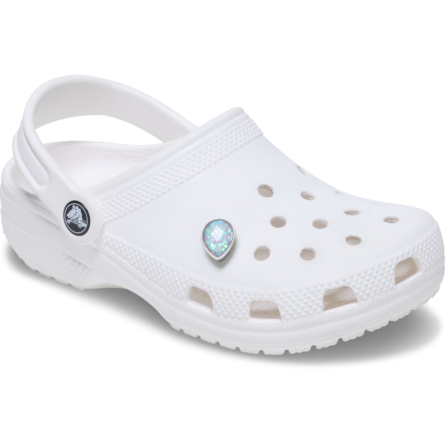 Pop some personality into your shoes with the Opalescent Meta SMT GemJibbitz™ charm. It's the perfect addition to your favorite clogs, slides, sandals, bags, and more.