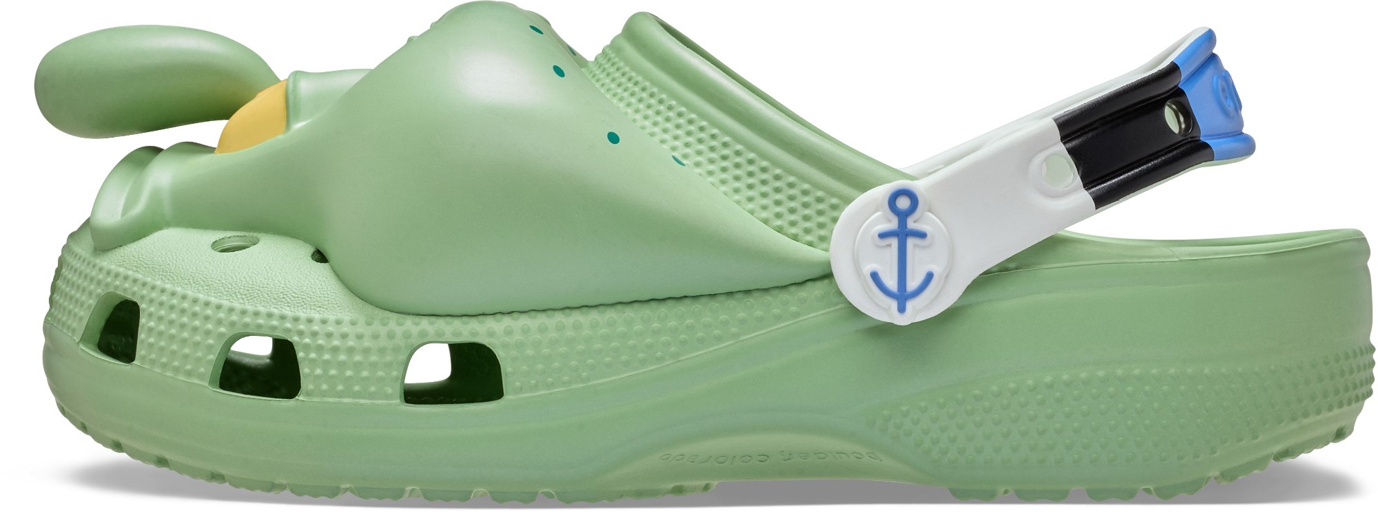 They’re here: the dreadful SpongeBob Squidward Classic Clog. Greaaaaaaaaat. Joining the lineup of SpongeBob character shoes is this exclusive style featuring an incredibly real 3D likeness of Squidward's face, including his bulbous nose and iconic frown. To make this pair even more your own, add your favorite collection of SpongeBob or nautical-themed Jibbitz™ charms to the heel strap.