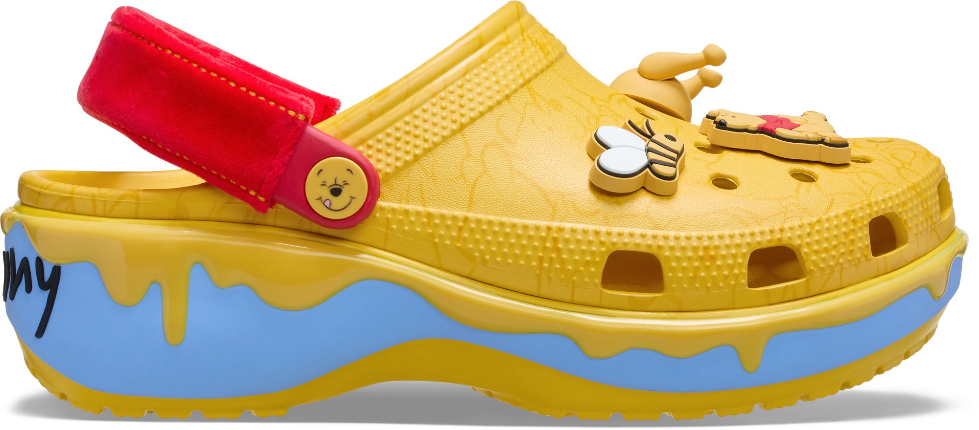 They’re sweet as honey. The Disney Winnie the Pooh Classic Platform Clog features an allover Pooh-bear print on a honey-colored background that drips down the platform sole. And exclusive Jibbitz™ Charms add even more cute character.