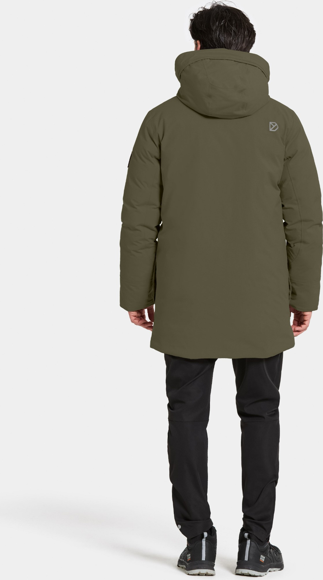 The Akilles parka is a functional and durable jacket designed for warmth and comfort during outdoor activities. With its cushion-shaped padding and technical construction, it provides reliable insulation while maintaining breathability. Fully water- and windproof with taped seams, it offers protection in all weather conditions. The parka features a two-way front zip and buttoned placket for optimal weather resistance. The fixed hood can be adjusted with a drawstring, and elastic inner cuffs help block out cold air. Practical details include multiple pockets — zipped chest and inner pockets, as well as buttoned front pockets — providing secure storage. Reflective logo details and zip pullers enhance visibility in low light.