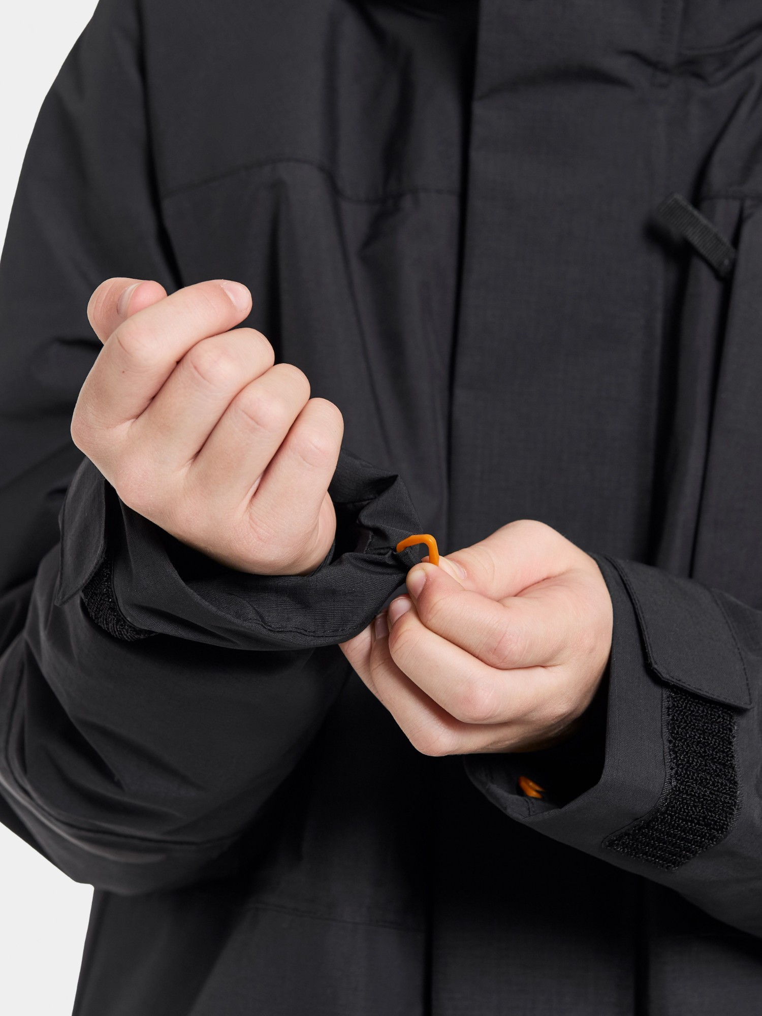 Gabbro is a soft and flexible jacket designed for all outdoor adventures. It is fully water- and windproof with taped seams and made from a breathable material, keeping kids dry and comfortable in both rain and wind. The detachable hood can be adjusted with Velcro for an optimal fit and protection. The jacket includes practical features such as a ski pass pocket, zipped side pockets, and a loop for attaching gloves. The cuffs are elastic and adjustable with Velcro, and the front zip is covered by a flap that closes with both Velcro and buttons. The collar protects the chin from the zip for extra comfort. A name tag with space for several names makes it practical for passing down or second-hand use.