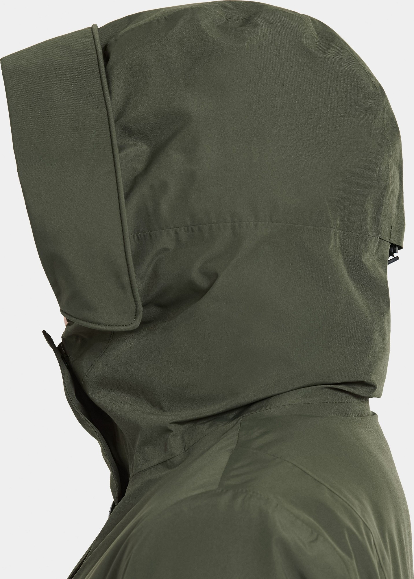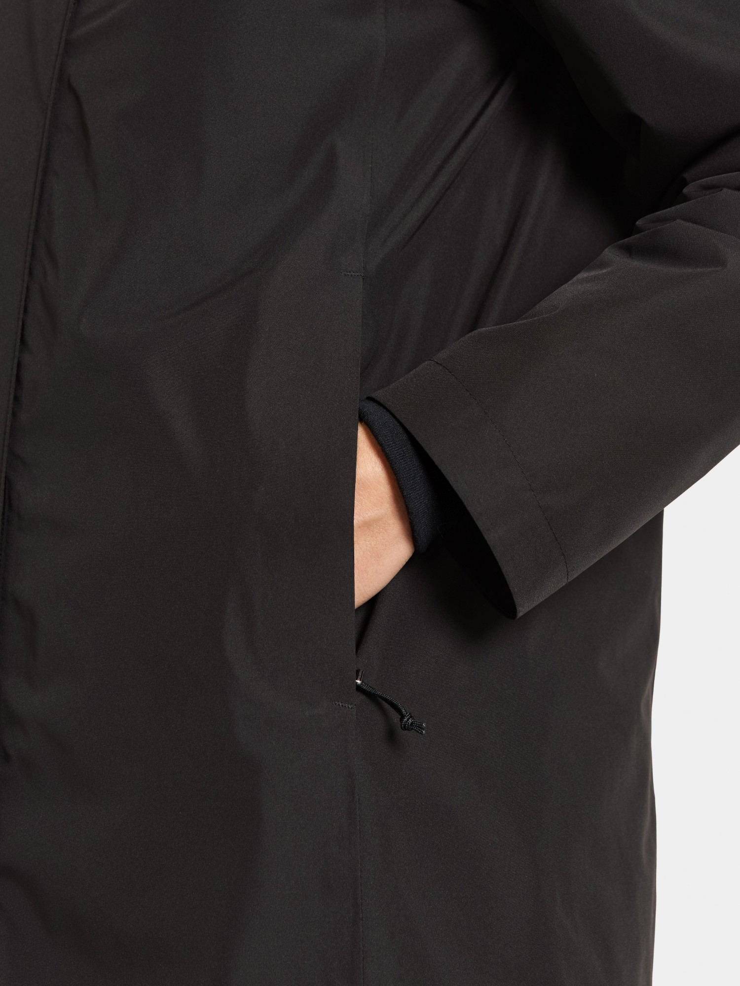 The front closure features a two-way zipper concealed behind a placket with buttons for enhanced weather protection. Elastic inner cuffs help keep out the cold, while practical zippered pockets offer secure and convenient storage. Thanks to its thoughtful collar design, the zipper never rests directly against the chin, increasing comfort.