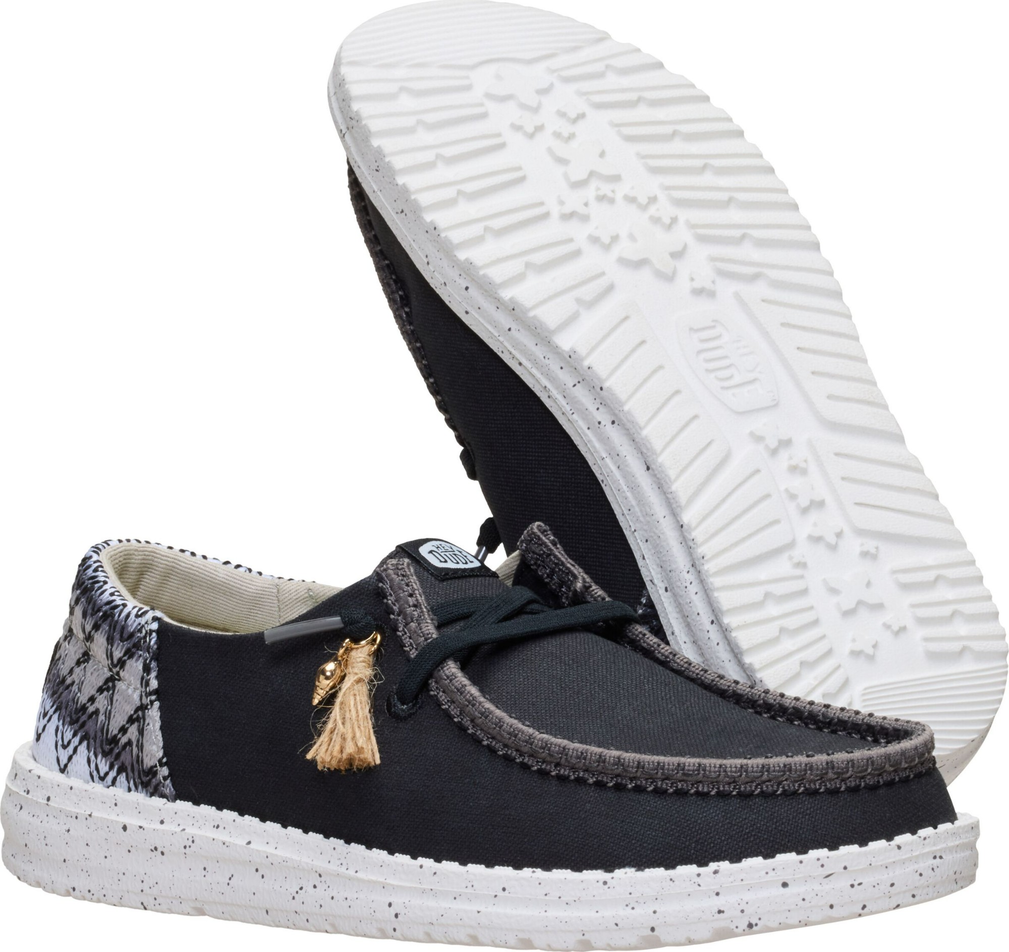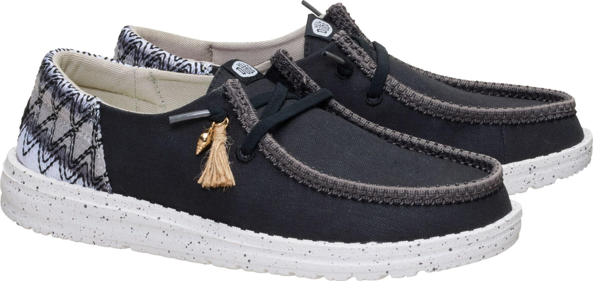 „Hey Dude® Wendy Funk Beach Woven“ loaferiai yra žemo profilio batai, puikiai derantys prie įvairių aprangos derinių ir stilių. Šie įsispiriami batai turi lengvai naudojamus elastinius raištelius, etileno vinilo acetato padą ir išimamą etileno vinilo acetato vidpadį, kuris užtikrina komfortą kiekvieną dieną. Jie pagaminti iš medvilninio viršaus ir pamušalo. Šie su raišteliais batai pasižymi „Flex & Fold“ dizainu, kuris dėl savo unikalios formos palaiko sveikas pėdas ir suteikia visišką judėjimo laisvę.