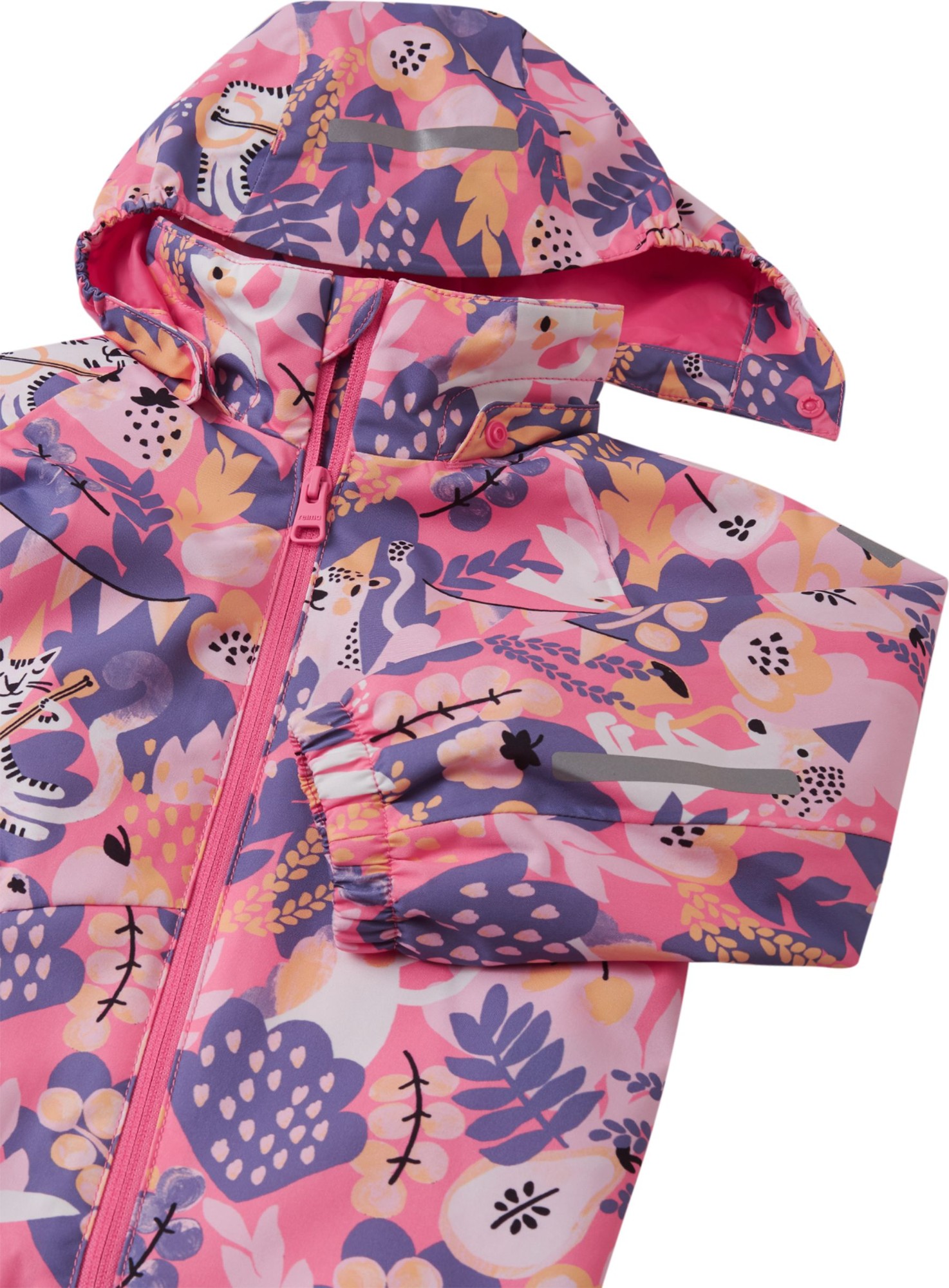 REIMA kvėpuojantis ir vandeniui nepralaidus poliuretano audinys apsaugo mūsų mažuosius nuo lietaus ir šalčio.