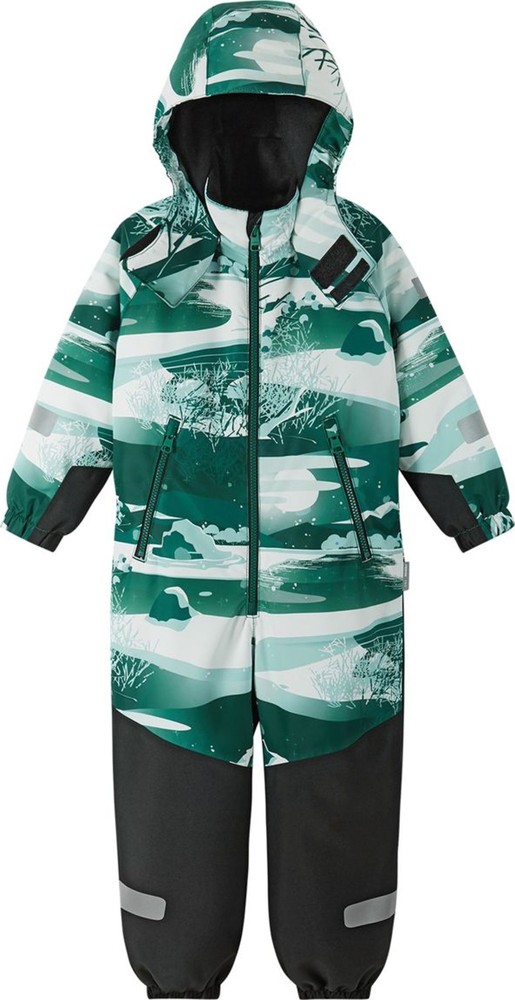 Reimatec žieminis kombinezonas vaikams. Nepralaidus vandeniui ir vėjui, su patvariais sustiprinimais kojų galuose. Didelės šviesą atspindinčios detalės.Visos kombinezono siūlės yra sandarios. Patvarūs sustiprinimai kojų srityje.