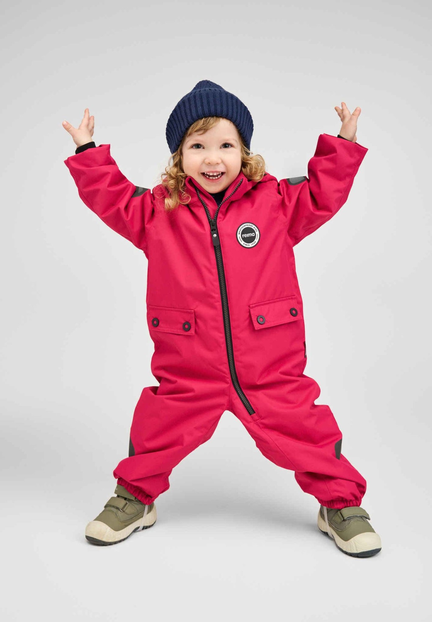 Say moi to our classic toddlers' one-piece that was inspired by the distinctive Reima design style of the 1970s. It was first introduced in 2014 and thanks to its bold features and uncompromising functionality, it immediately became a hit among Nordic parents.