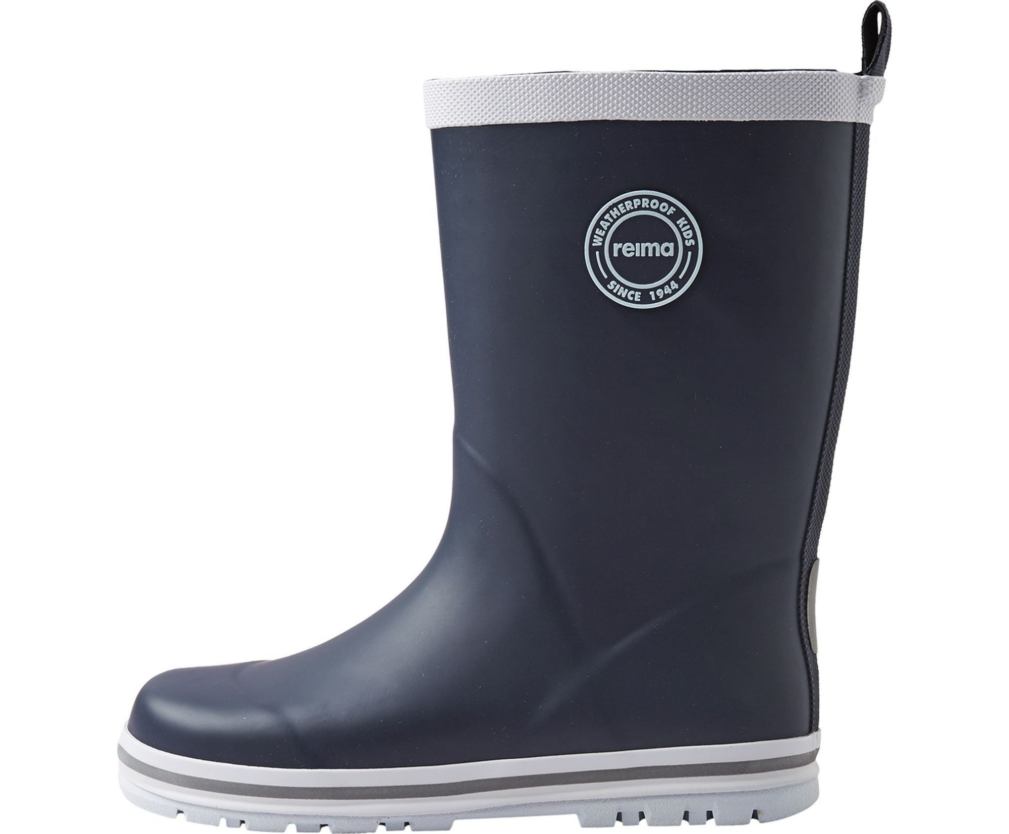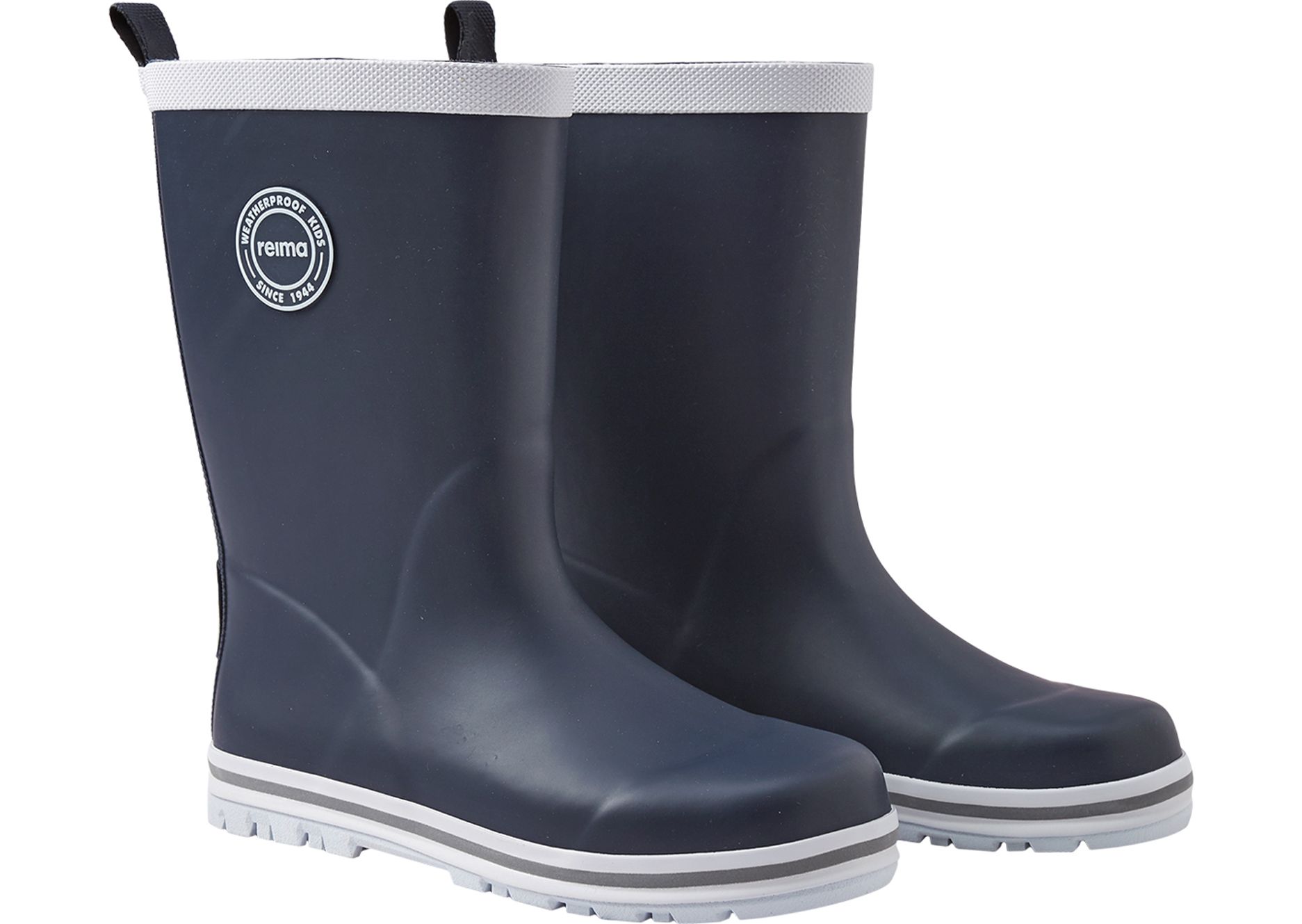Our classic kids' wellies with reflecting piping around the sole. These Reima rubber boots are made from a material that includes 40% natural rubber, and the outsole is crafted from a vulcanized PVC-free rubber. The children's rain boots are lined with cotton for comfort and include removable insoles with the Happy Fit print to help you find the correct size.