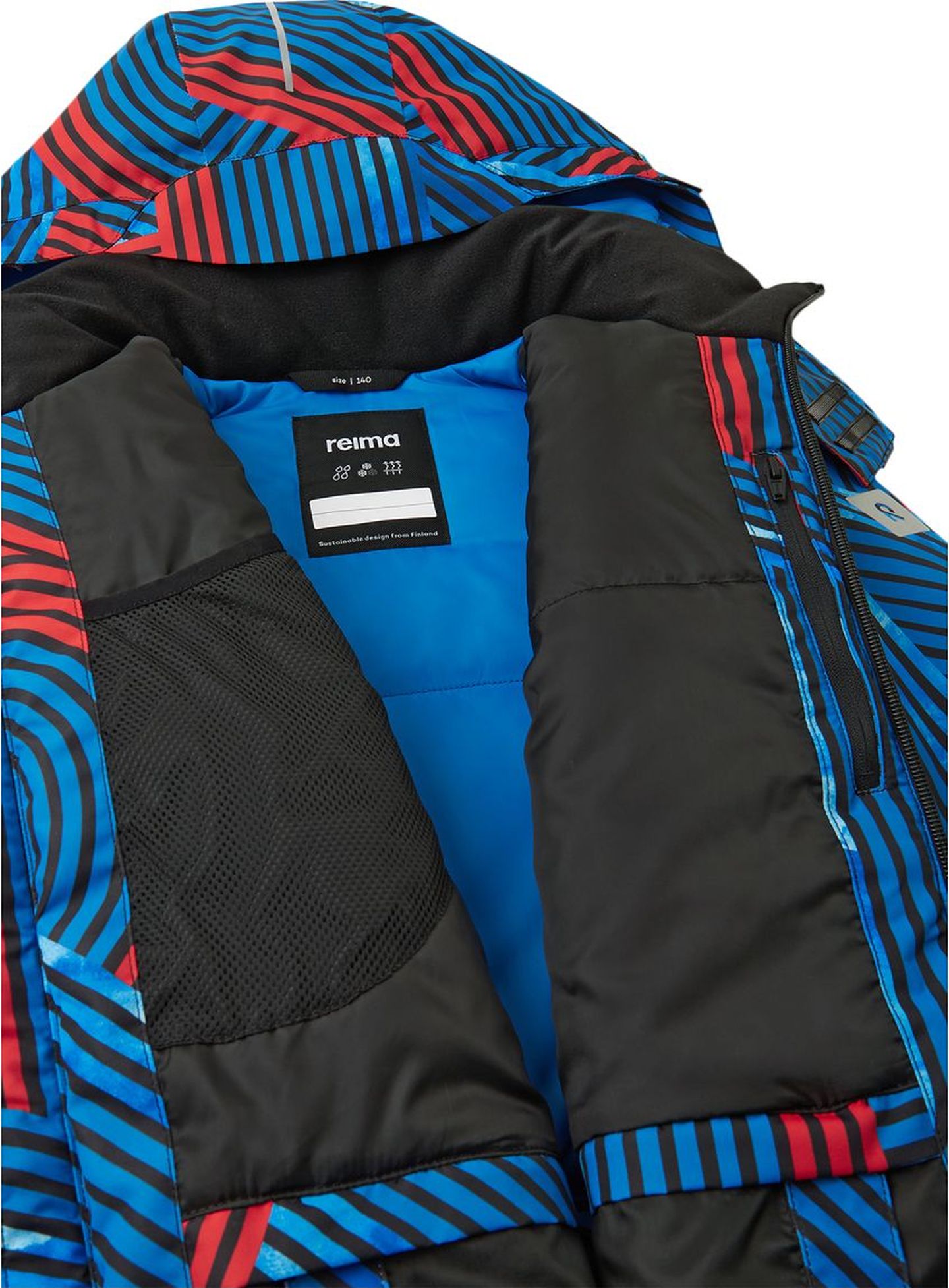 Reima žieminė slidinėjimo striukė, nepraleidžianti vandens ir turinti visiškai sandarias siūles. Tai itin pralaidus orui drabužis, skirtas smagiai leisti laiką lauke, nesvarbu, ar žaidžiant su sniego gniūžtėmis ar slidinėjant. "Bluesign®" patvirtintas audinys su saugia purvą ir vandenį atstumiančia danga, todėl nei sniegas, nei lietus ar šlapdriba nebus baisu. Reguliuojami rankogaliai, reguliuojamas apačios kraštas ir sniego užraktas ties juosmeniu padeda sulaikyti šaltį ir drėgmę. Taip pat yra daug kišenių būtiniausiems daiktams laikyti.